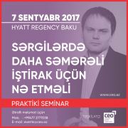 7 sentyabr tarixində “Hyatt Regency” otelinin İclas və Konfrans Mərkəzində “Sərgilərdə daha səmərəli iştirak üçün nə etməli” mövzusunda praktiki seminar keçiriləcək